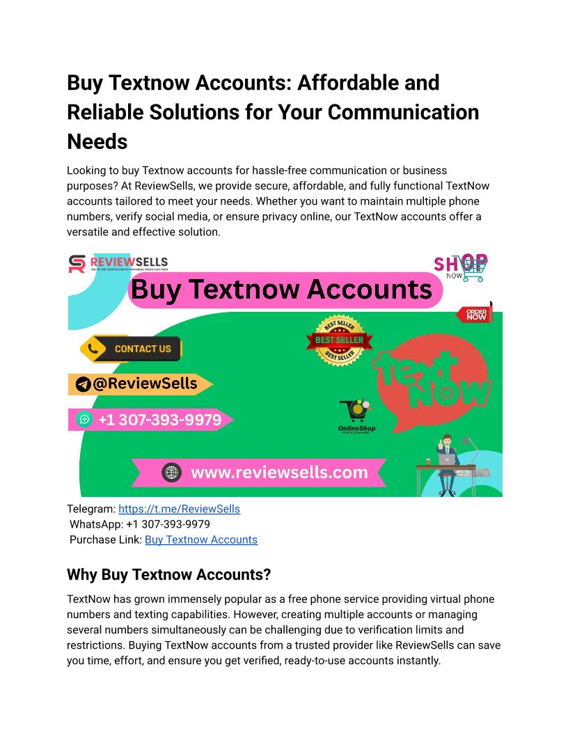 Buy Textnow accounts effortlessly Purchase from reviewsells com for reliable communication solutions Fast, easy, and secure transactions