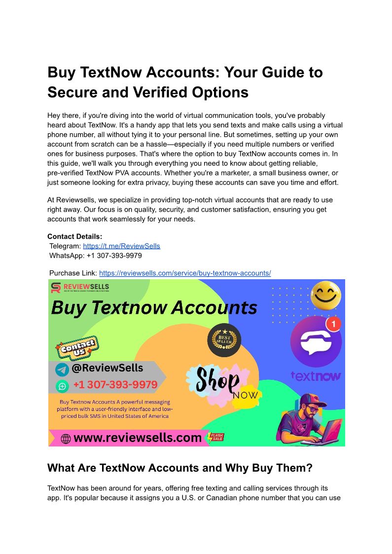 Buy Textnow accounts effortlessly Purchase from reviewsells com for reliable communication solutions Fast, easy, and secure transactions