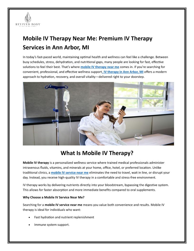 Mobile IV Therapy Near Me