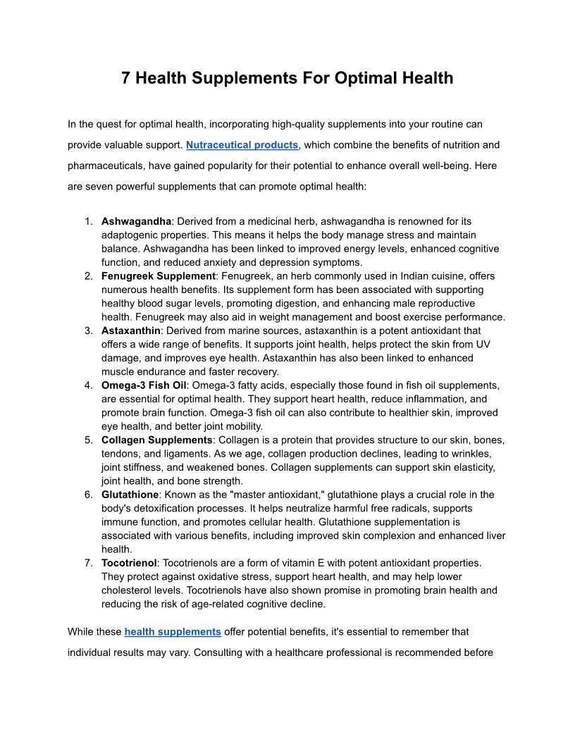 7 Health Supplements For Opt...