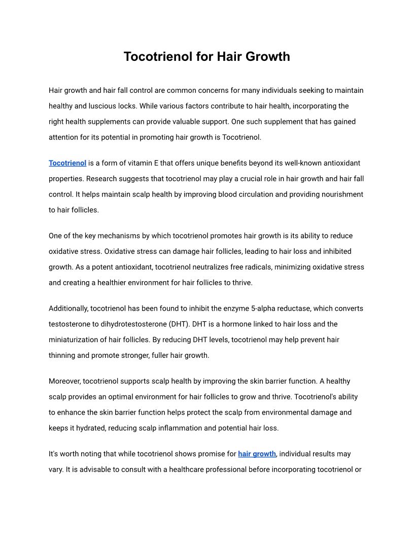 Tocotrienol for Hair Growth ...