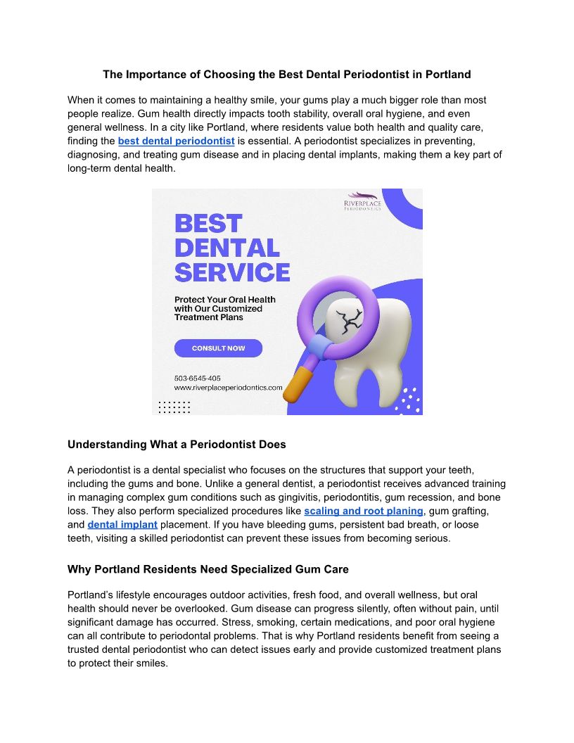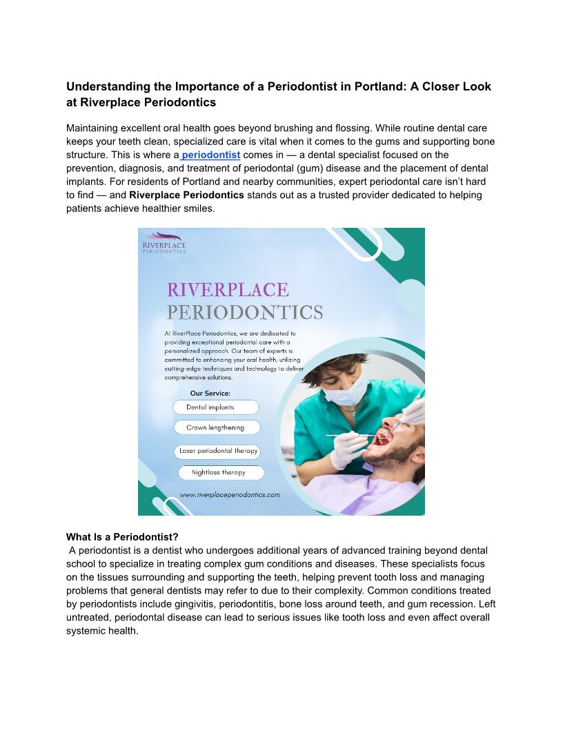 At RiverPlace Periodontics in Portland, OR, we provide expert periodontics dental services including gum disease treatment, dental implants, and oral care.