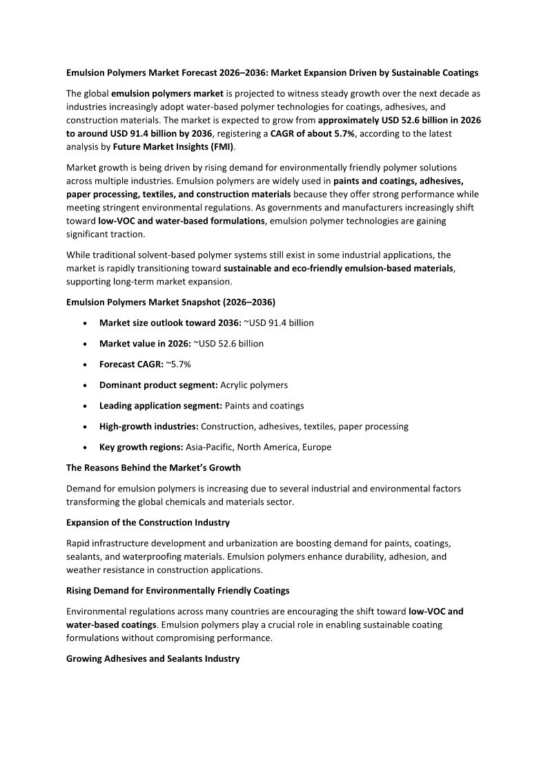 Emulsion Polymers Market For...