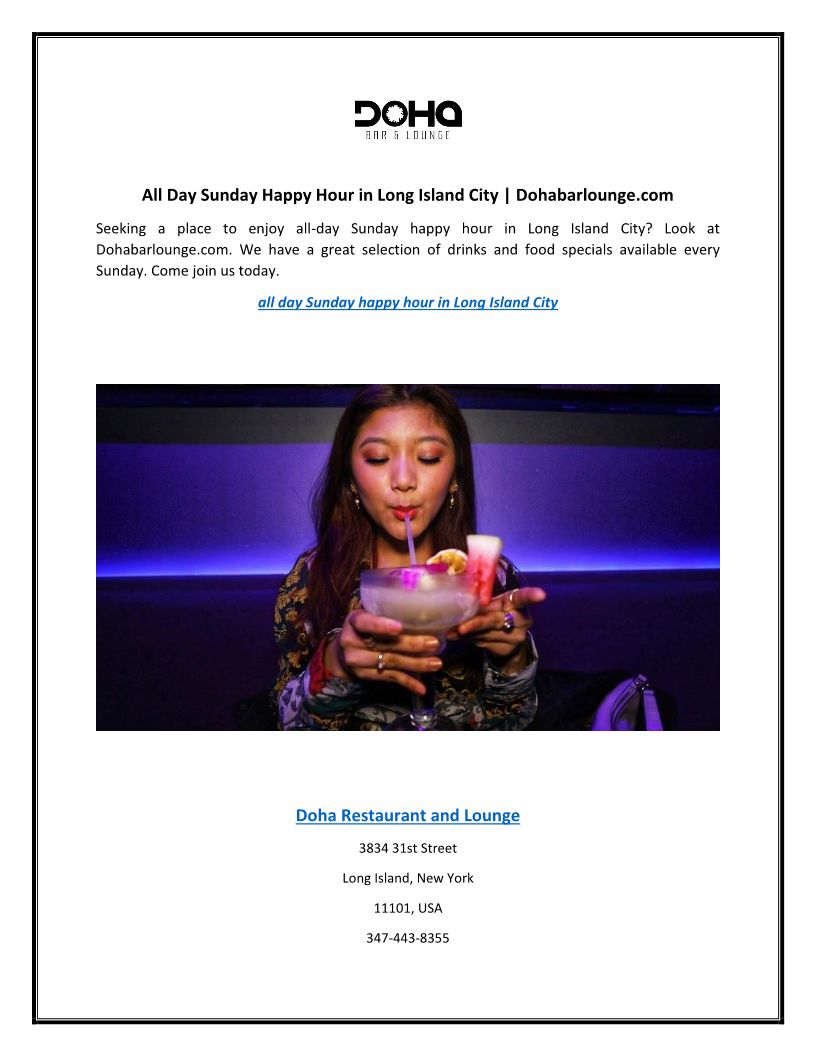 All Day Sunday Happy Hour in...