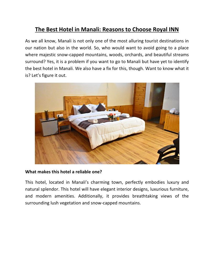 Royal INN Hotel is the perfect place for families and couples looking for a comfortable and convenient stay in Manali.