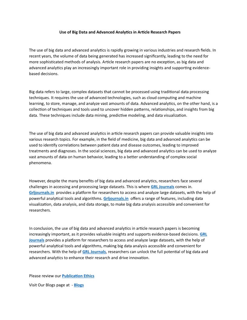 Use of Big Data and Advanced...