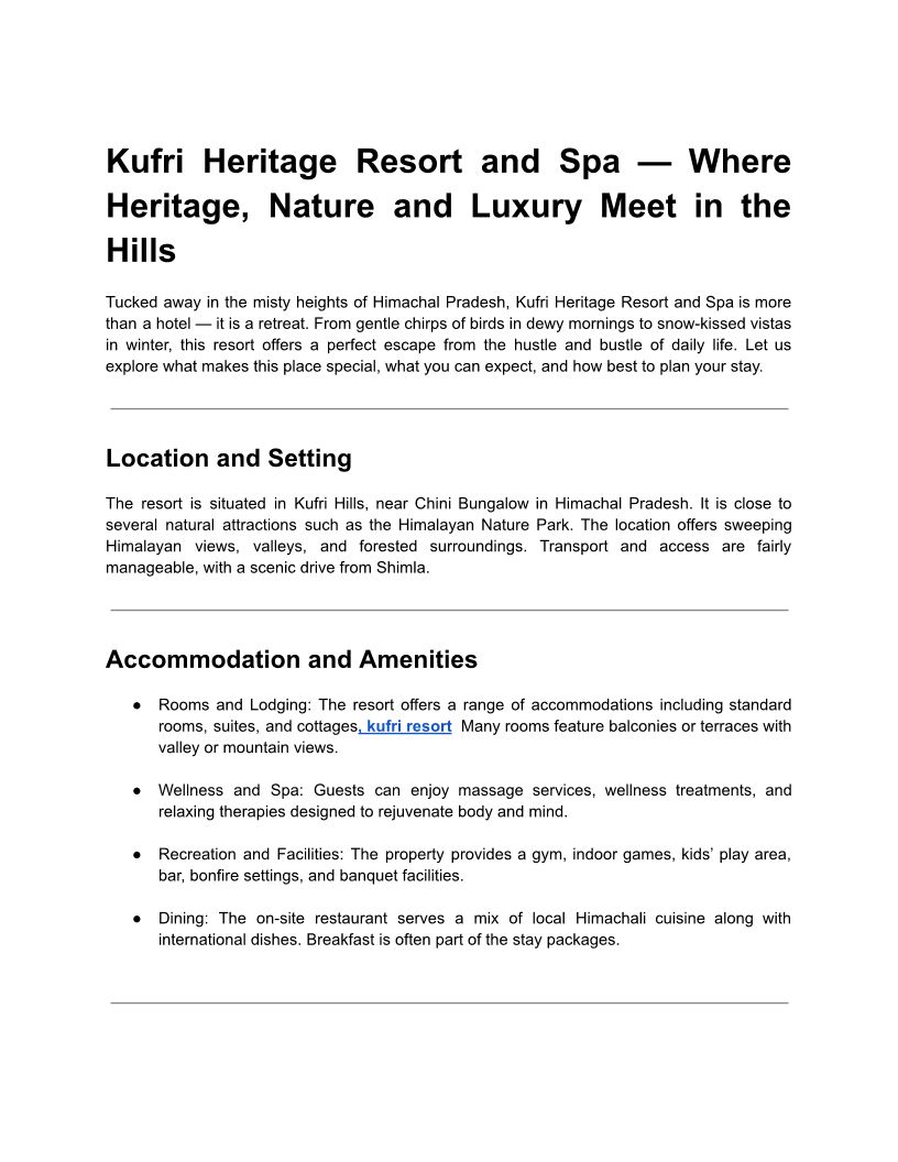 Kufri Heritage Resort and Sp...