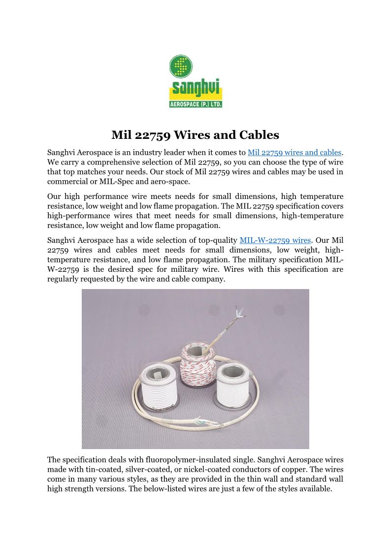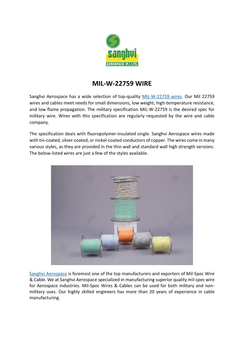 Sanghvi Aerospace Pvt. Ltd, founded in 1992. We specialize in aerospace wires and cables manufacturing.