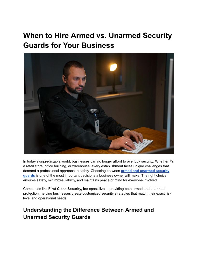 First Class Security, Inc. stays ahead of today’s challenges with proactive security guard and patrol services