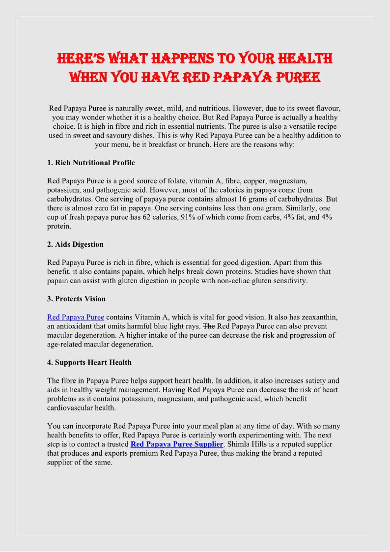 Red Papaya Puree Exporters