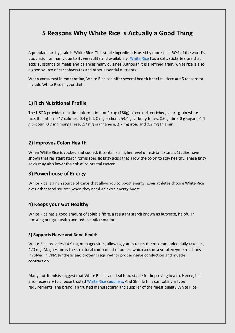 5 Reasons Why White Rice is ...