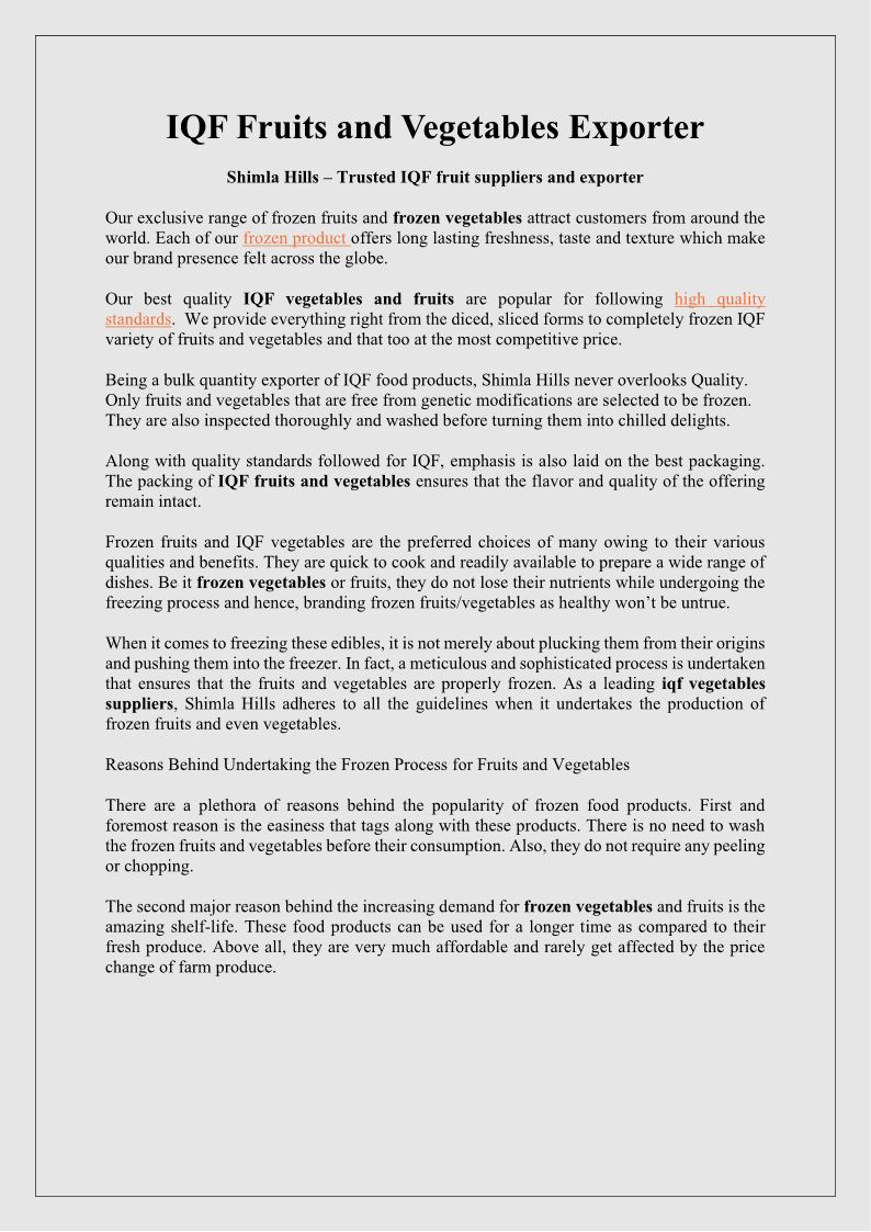 IQF Fruits and Vegetables Ex...