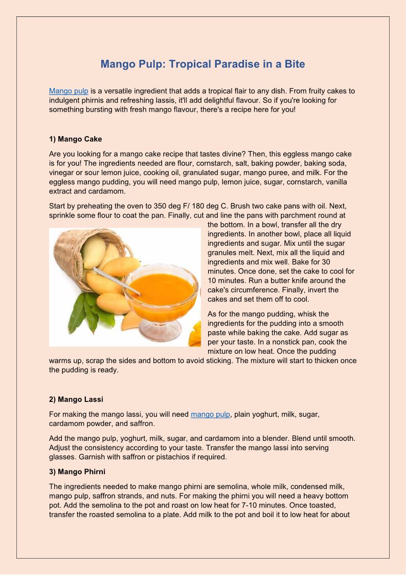 Mango Pulp Suppliers