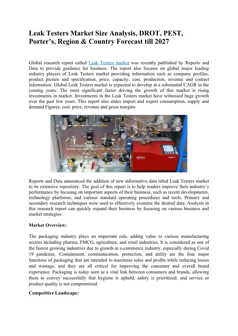 Leak Testers Market