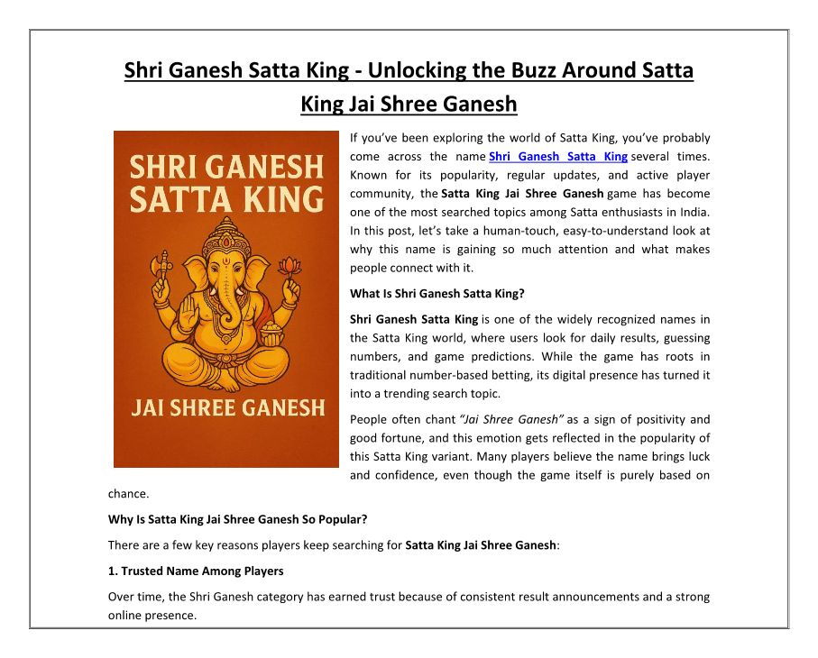 Satta King Shri Ganesh: Unde...