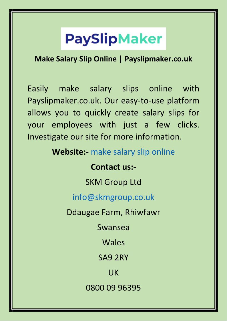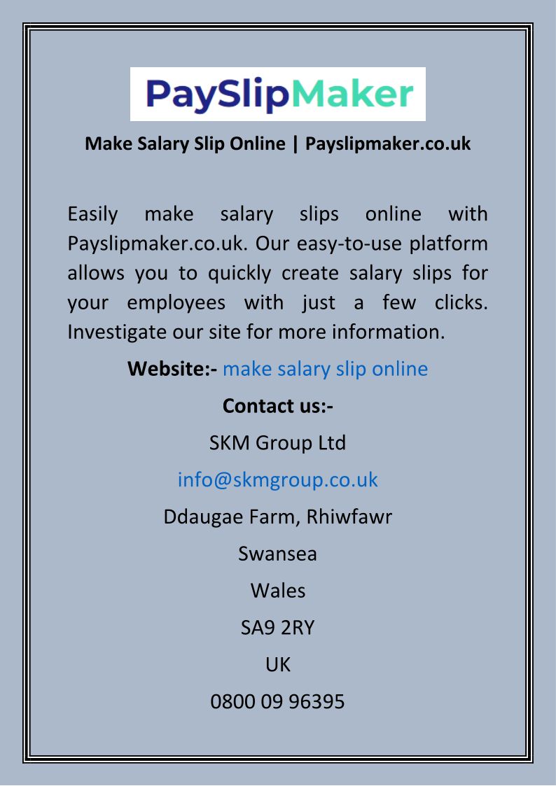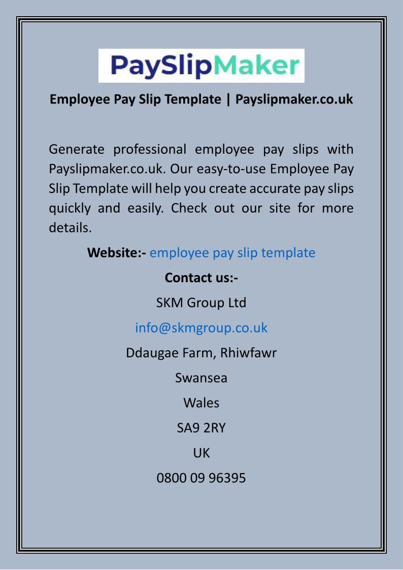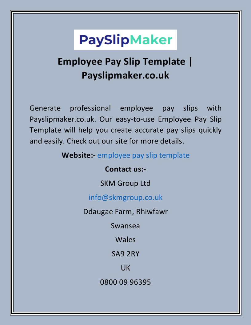 Free payslip maker. Print or download your customised payslip documents instantly. A full selection of payslip document templates for you and your business.
