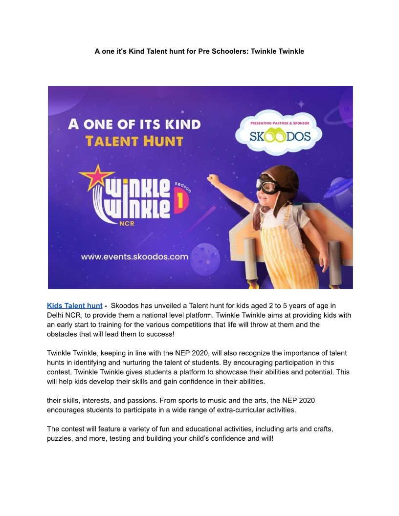 A one it's Kind Talent hunt ...