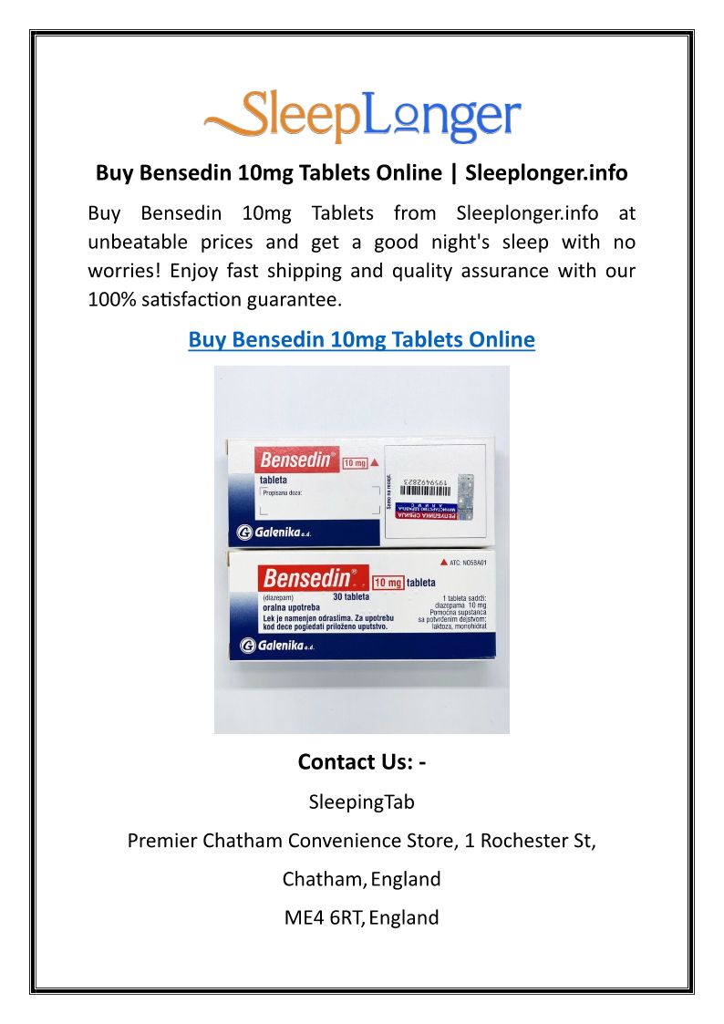 Buy Bensedin 10mg Tablets On...