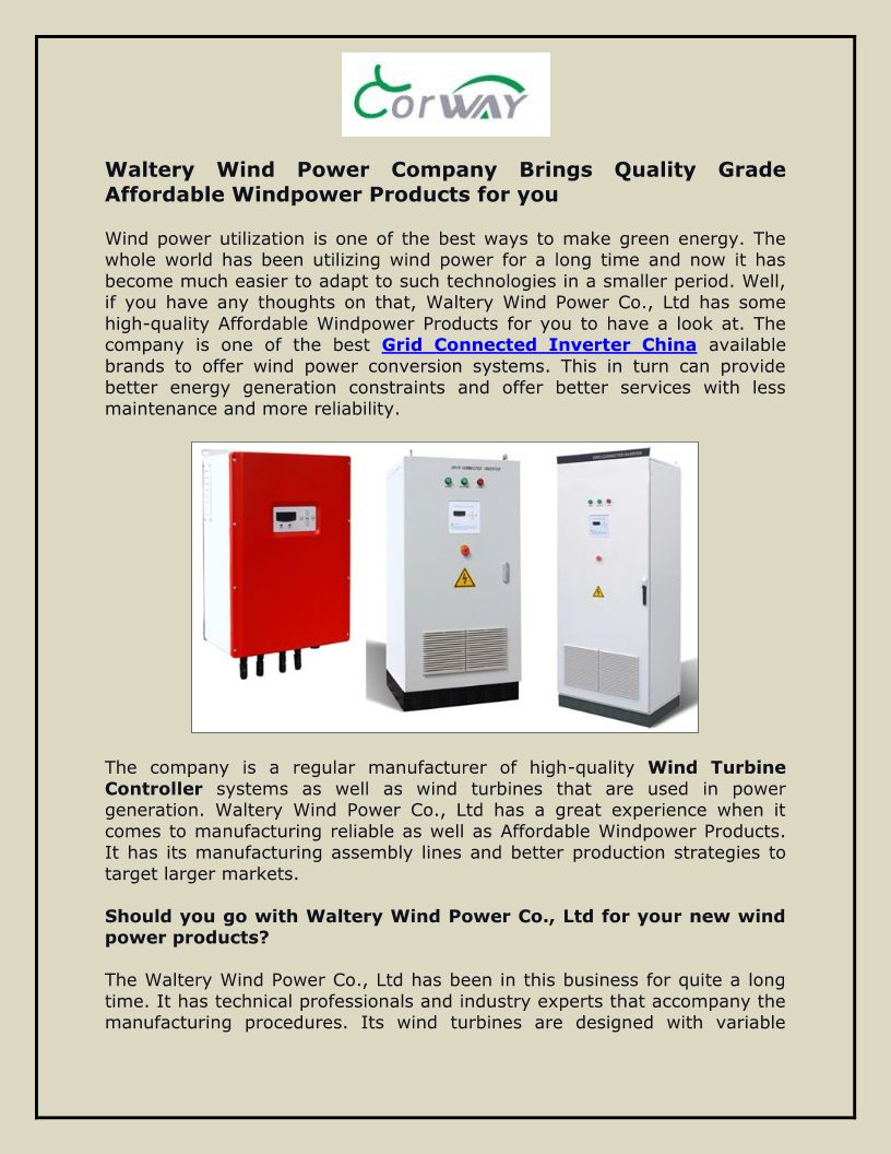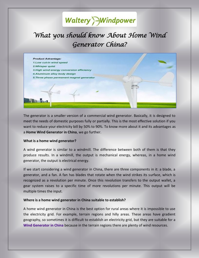 Waltery Wind Power Co., Ltd, is a leading manufacturer of small wind generators likes S Series Wind Turbine, M Series Wind Tu in China. https://bit.ly/3ypjt1j