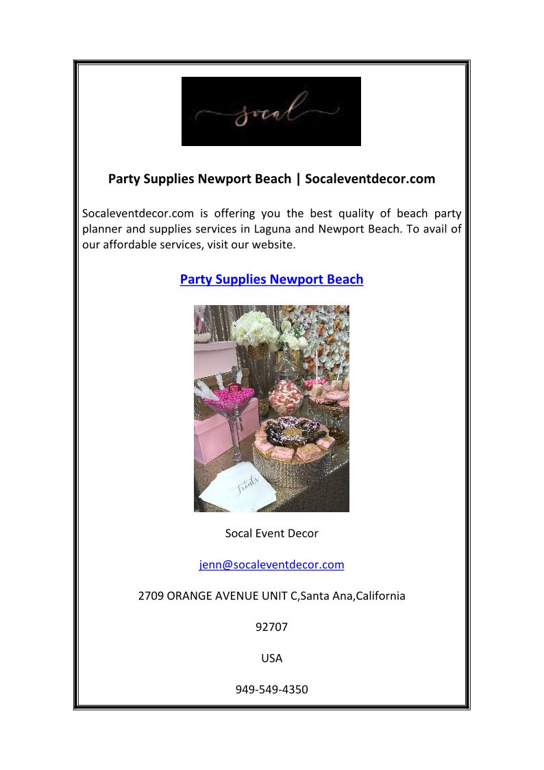Party Supplies Newport Beach...