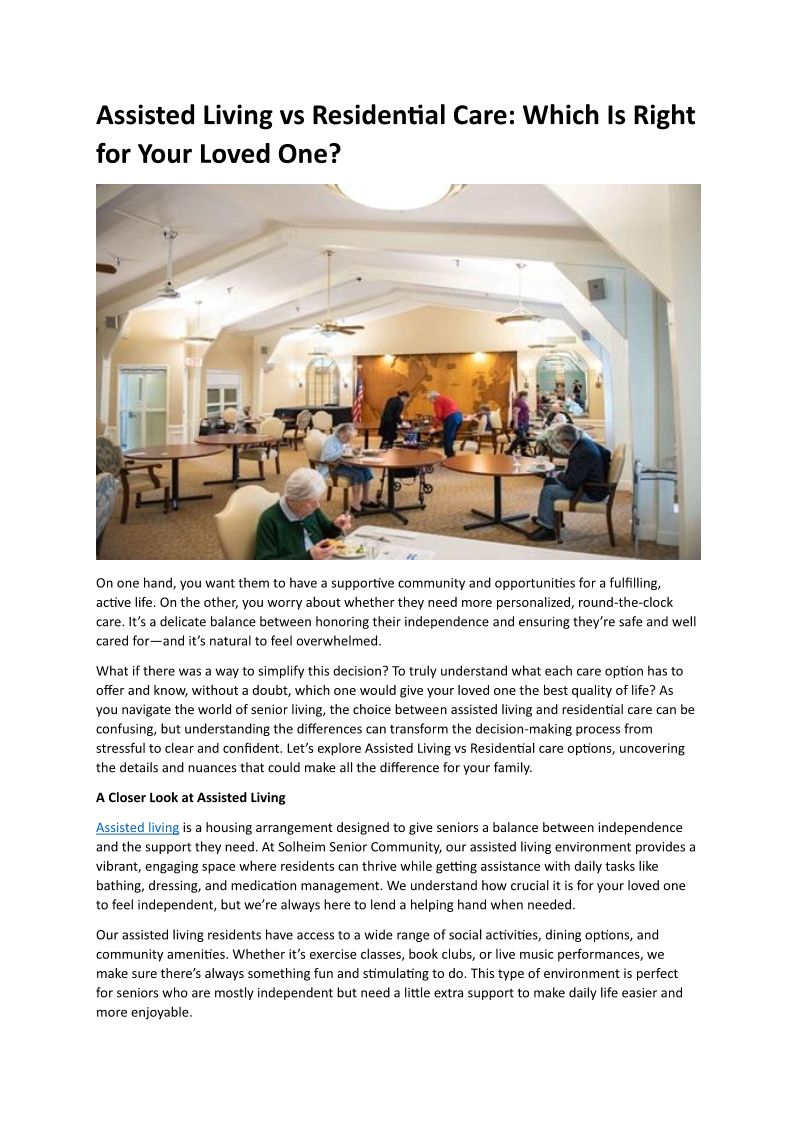 Solheim Senior Community is a single-site, non-profit continuing care retirement community (CCRC) in the community of Eagle Rock which is part of the city of LA