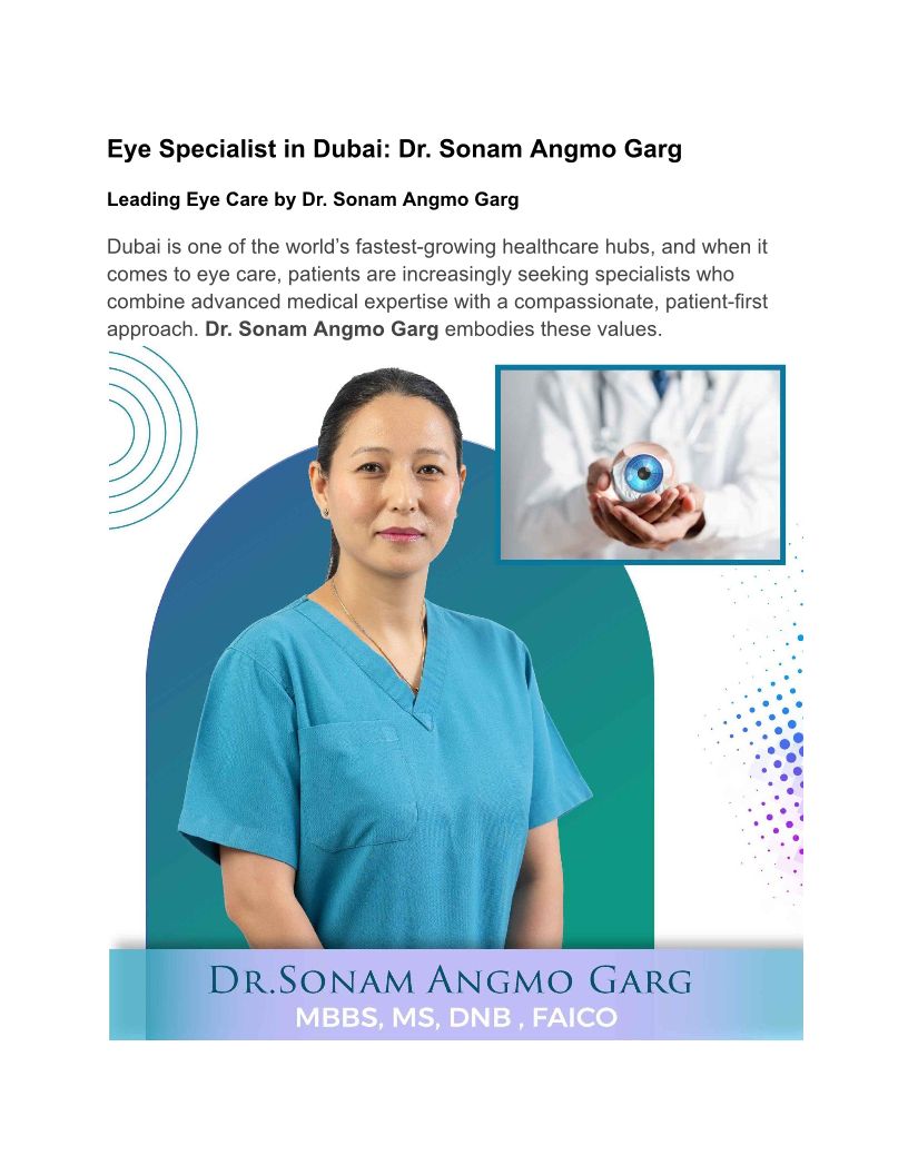 Dr. Sonam Angmo Garg is dedicated to providing comprehensive, advanced, and patient-centric eye care to help individuals achieve the best vision possible. With