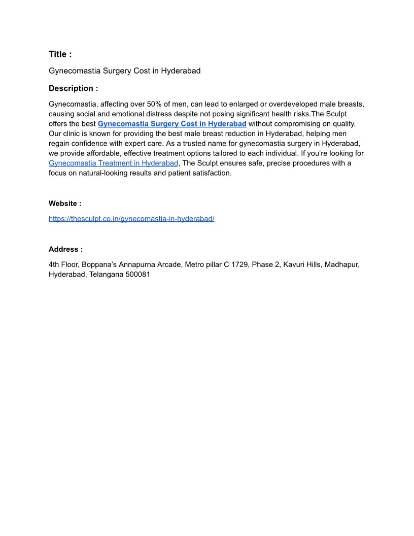 Gynecomastia Surgery Cost in...