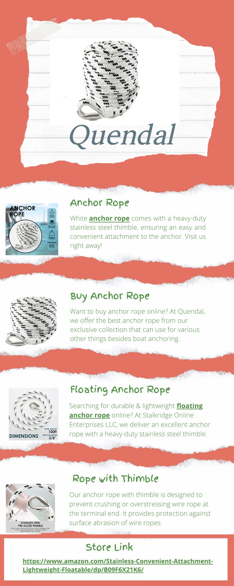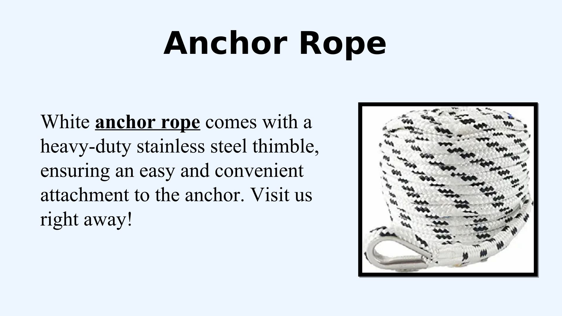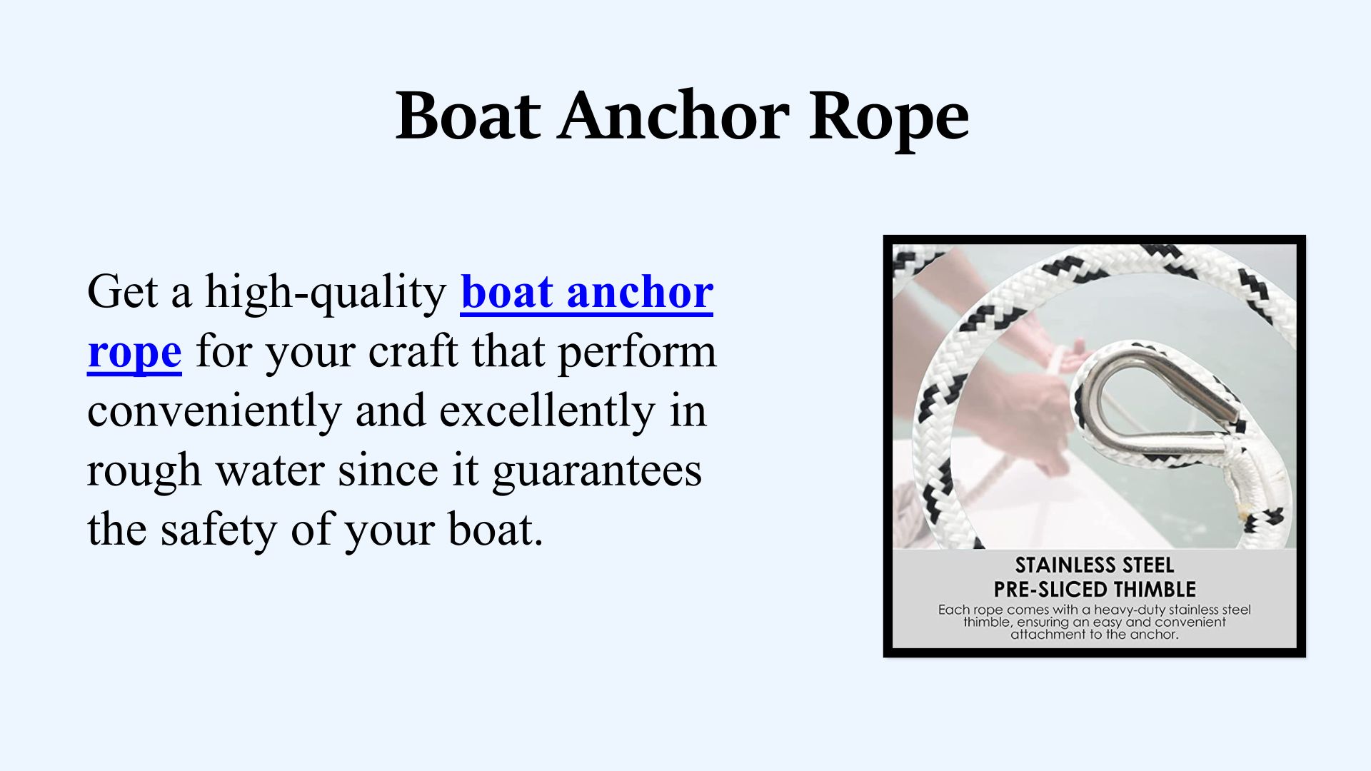 At Stalkridge Online Enterprises LLC, we deliver an excellent anchor rope with a heavy-duty stainless steel thimble, ensuring an easy.