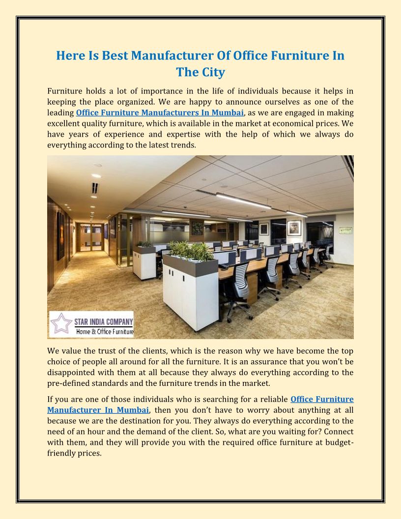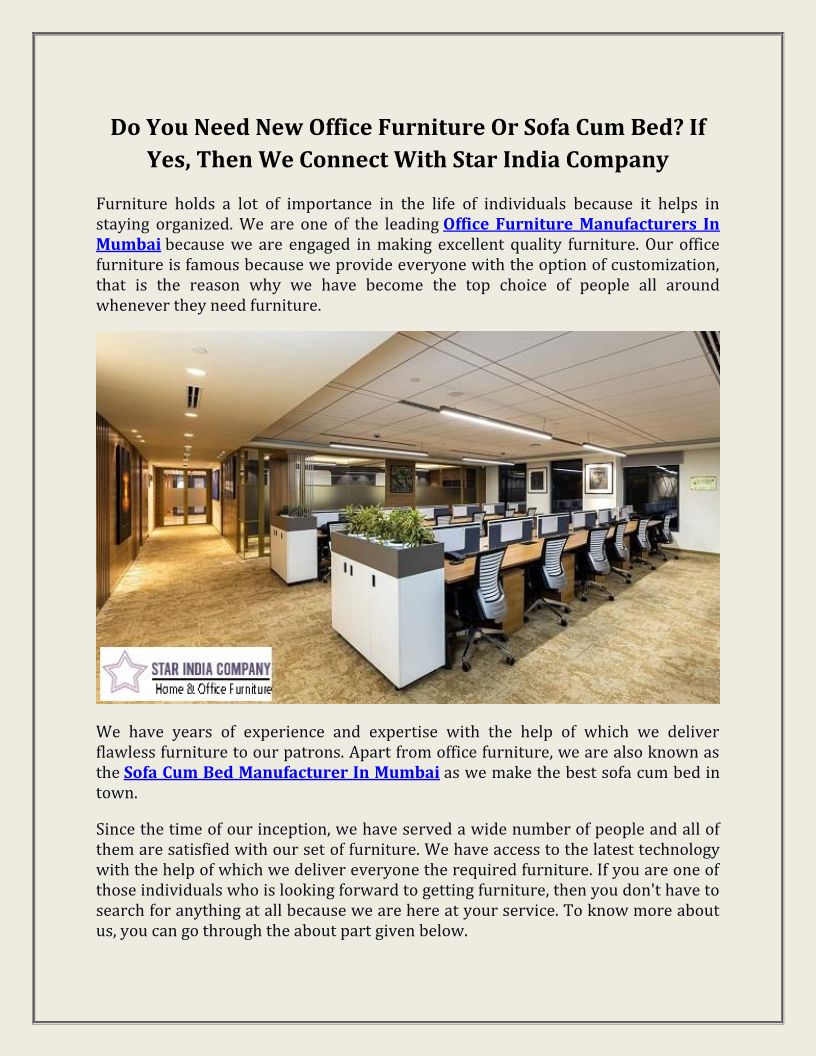 Star India Company is one of the leading names in Mumbai, as it is offering a wide range of furniture to everyone at competitive market prices.