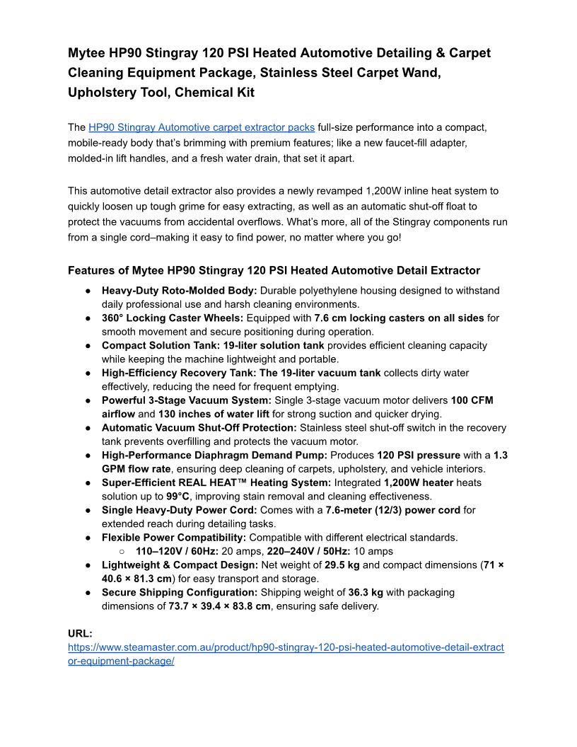Mytee HP90 Stingray 120 PSI ...