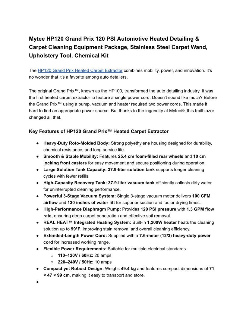 Mytee HP120 Grand Prix 120 P...