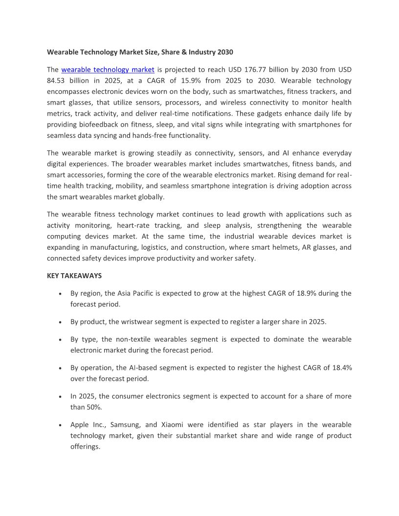 Wearable Technology Industry...