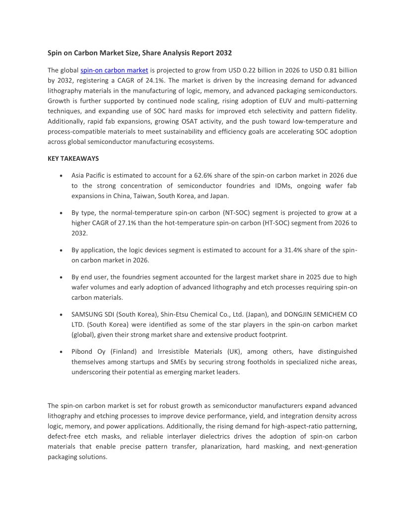 Spin on Carbon Market Size, ...