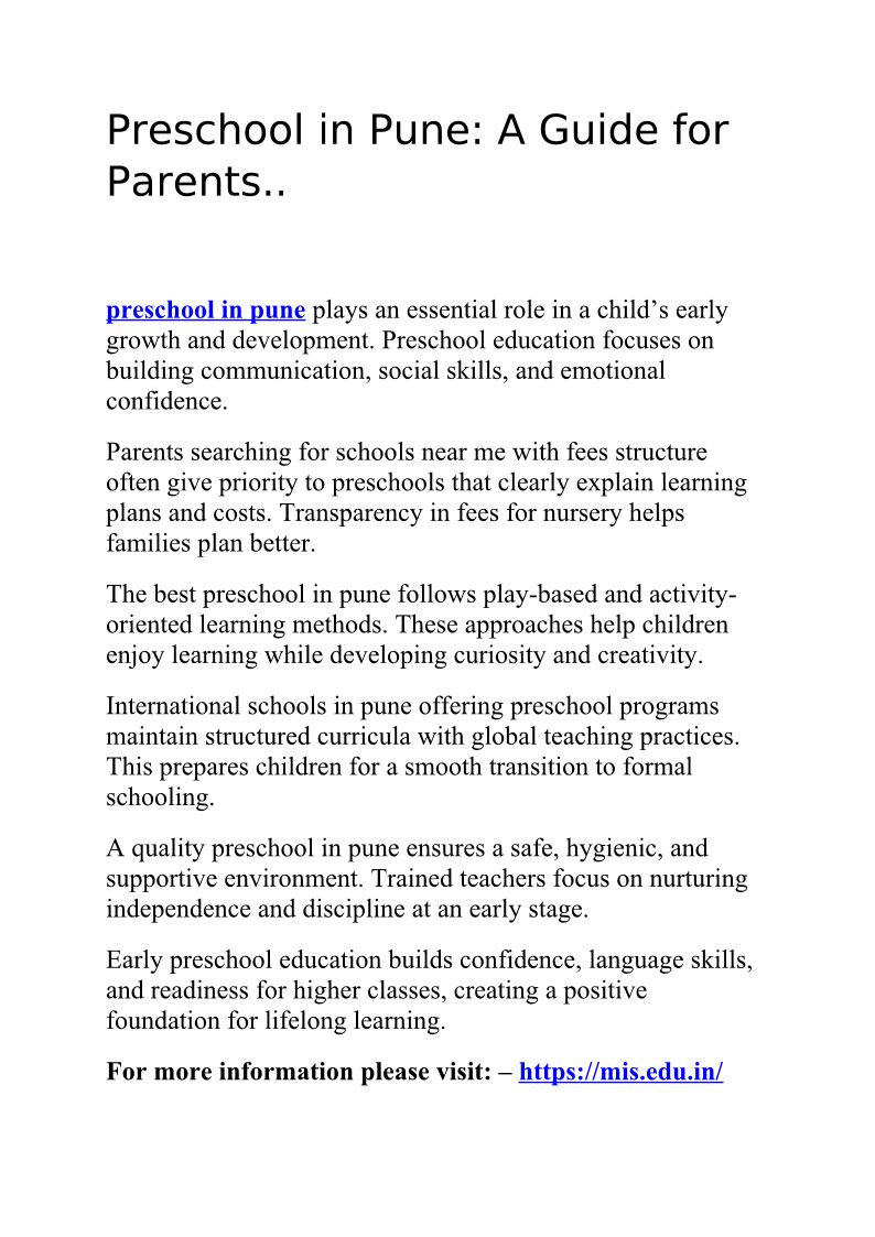 Preschool in Pune: A Guide f...