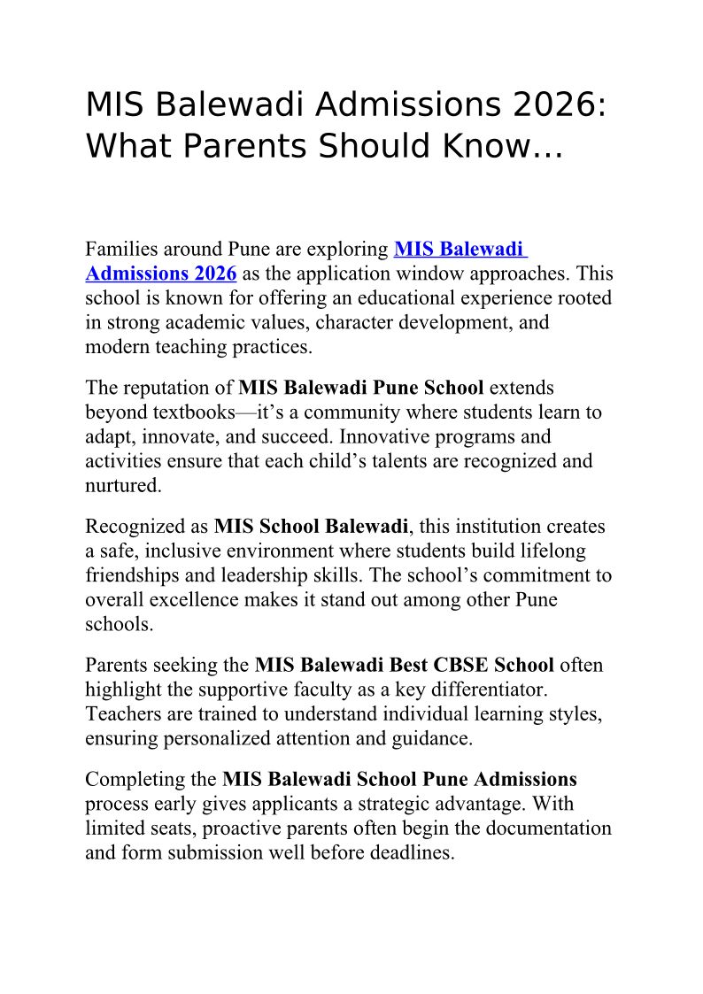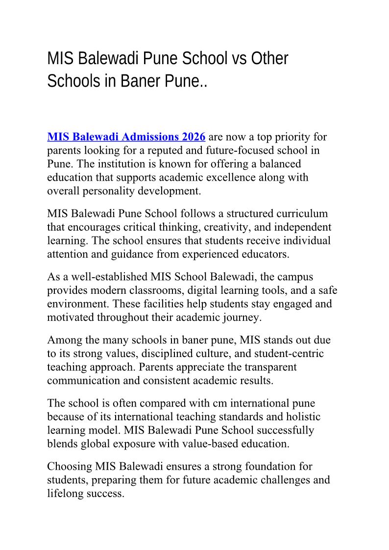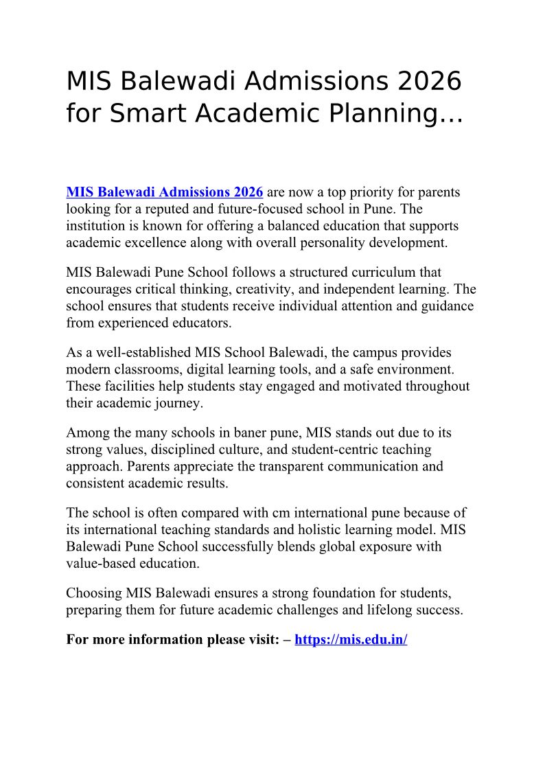 MIS Balewadi Admissions 2026...