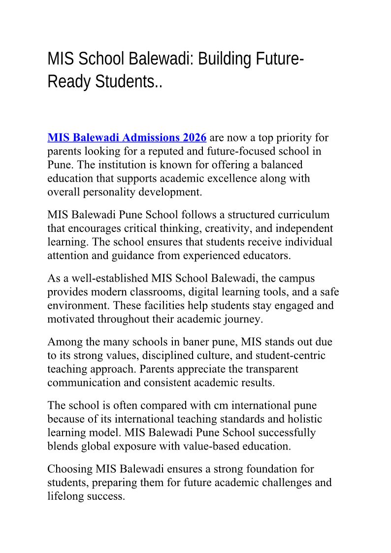 MIS Balewadi Admissions and ...