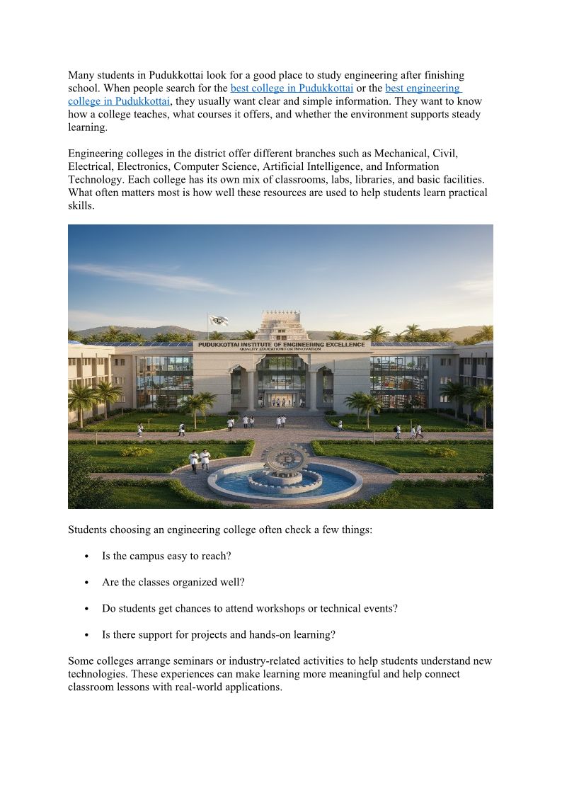 Sudharsan Engineering College stands as the best college in Pudukkottai, recognized as the best engineering college in Pudukkottai for quality education.
