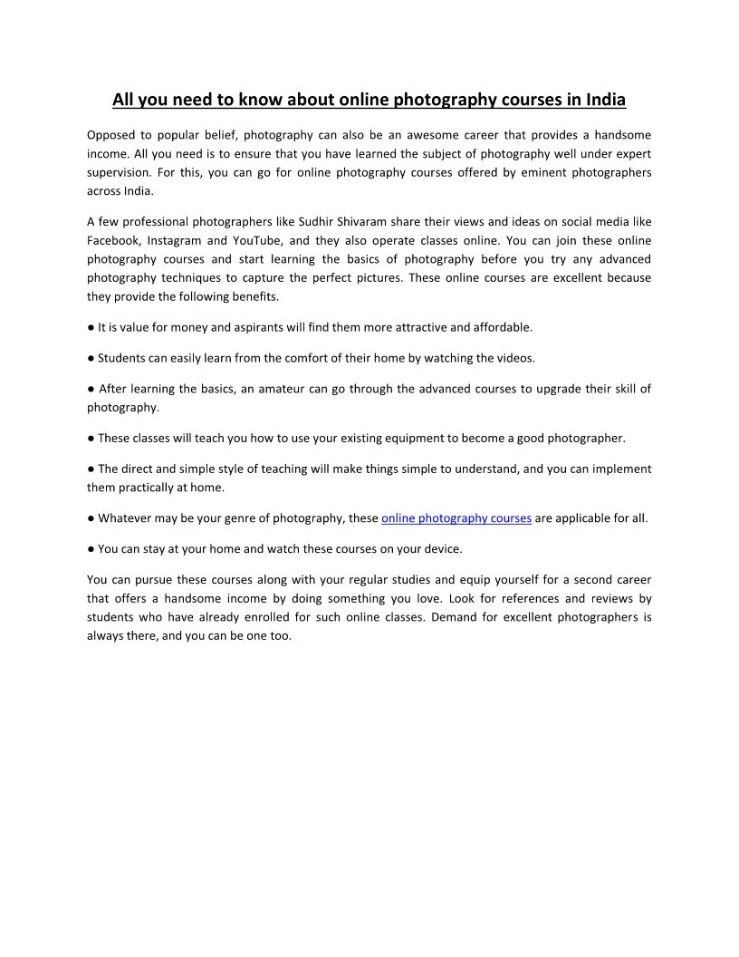 Build A Career in Photograph...