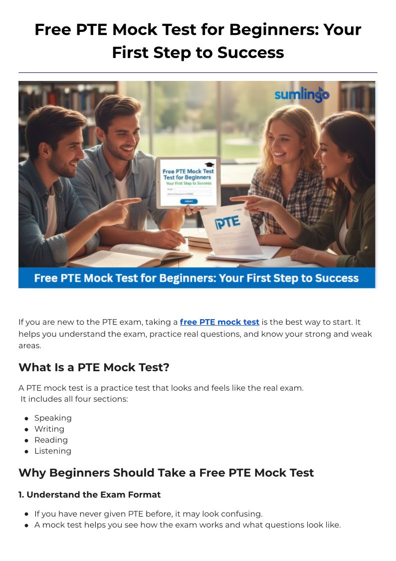 Sumlingo is an online platform dedicated to helping individuals prepare for English proficiency exams such as PTE, IELTS, and TOEFL. The platform offers a range