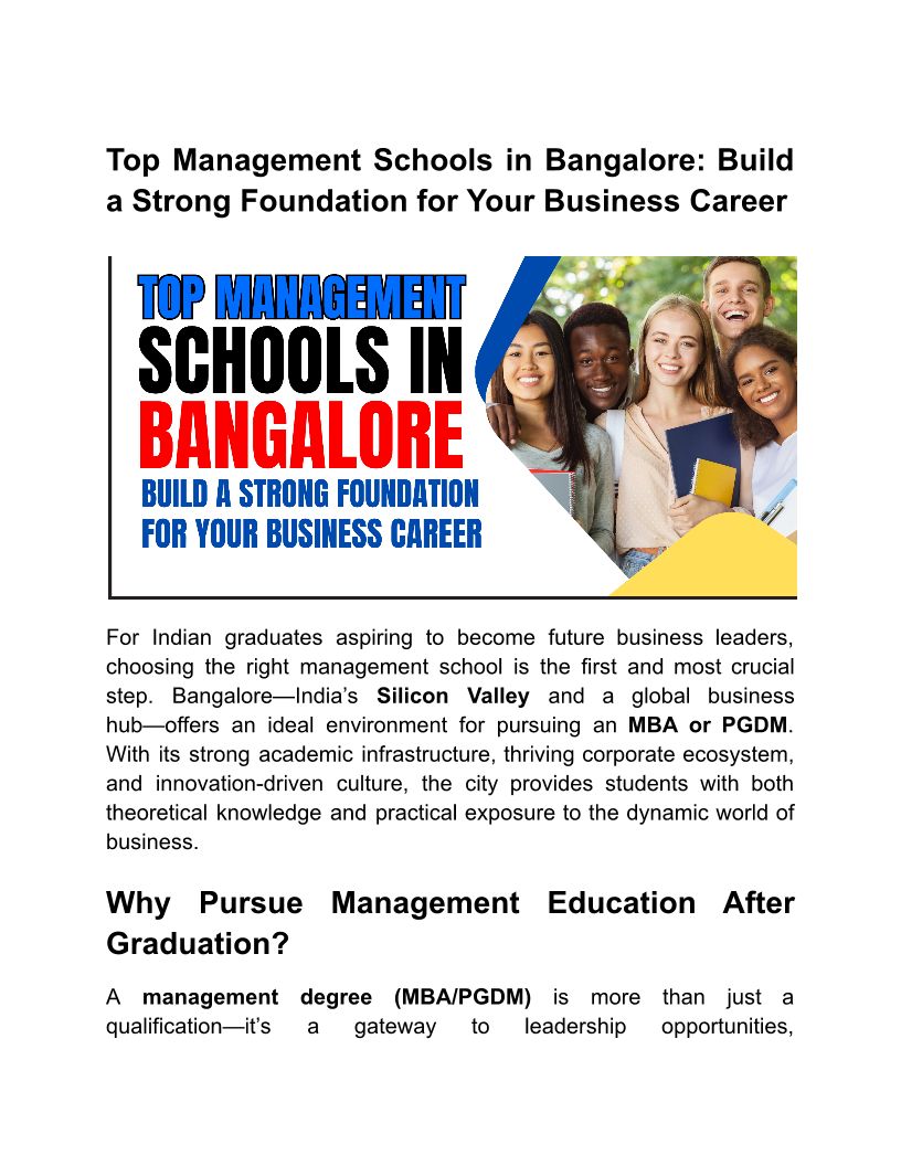 Top B-Schools in Bangalore S...