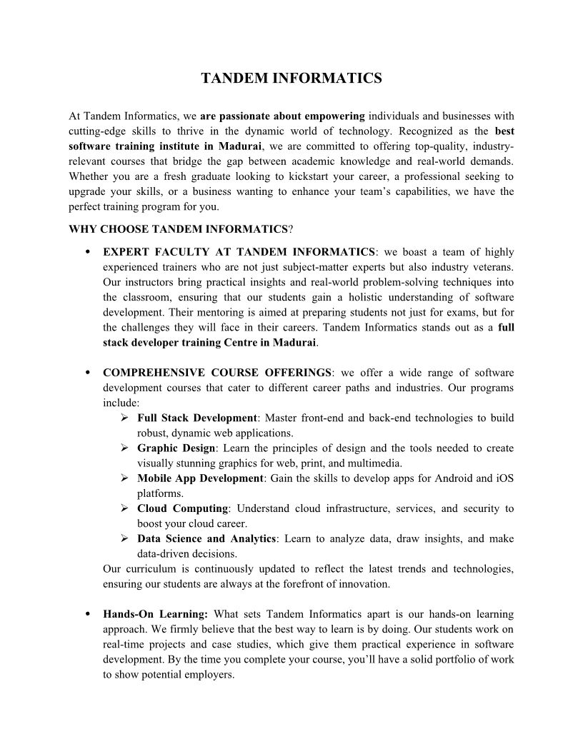 At Tandem Informatics, we are dedicated to empowering the next generation of tech professionals through cutting-edge training and hands-on experience.