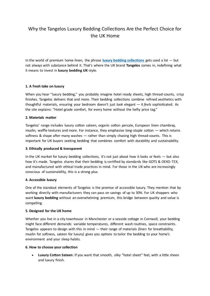 Tangelos offers luxury bedding collections specially designed for UK homes. https://www.tangelos.co.uk/