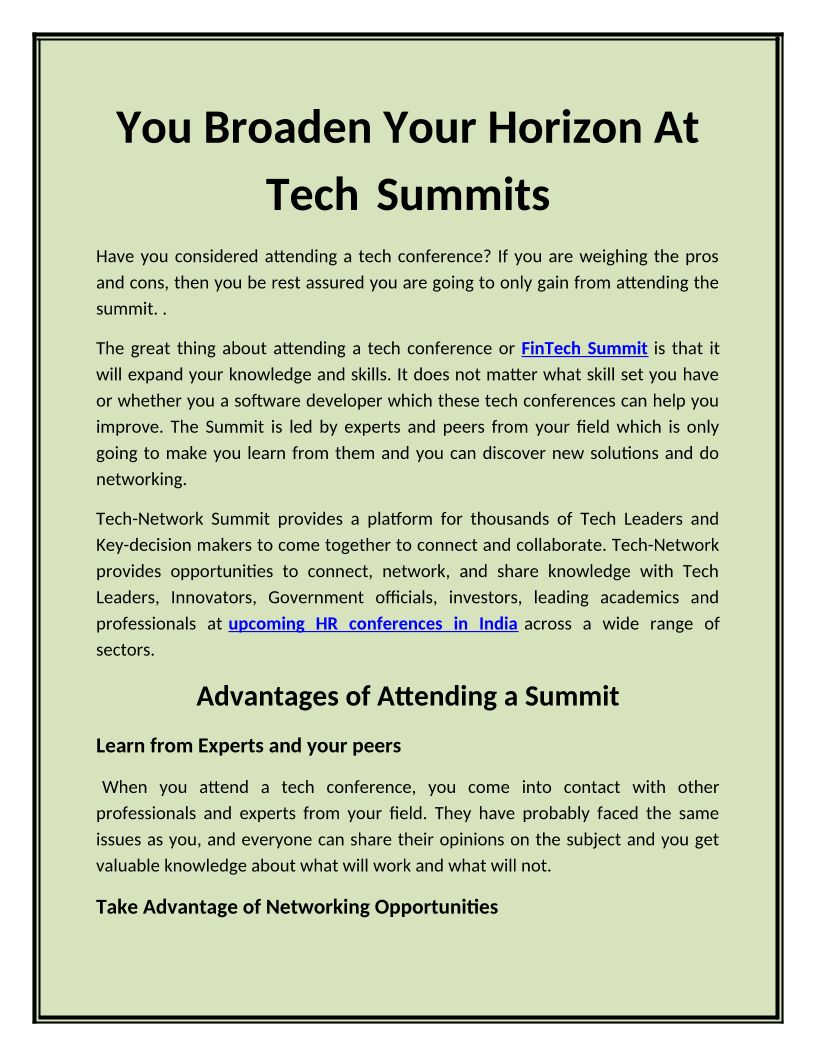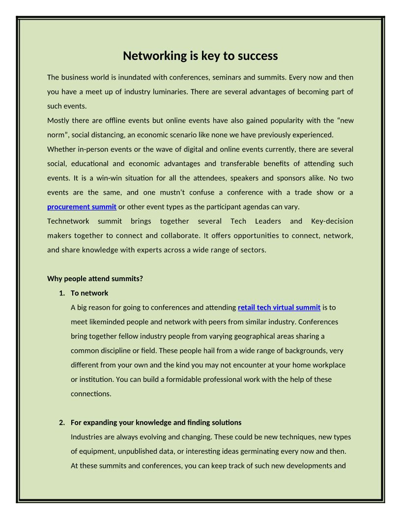 One Day online summit bringing together thousands of Tech Leaders & Key-decision makers together to connect & collaborate. Tech-network offers opportunities to