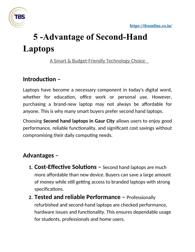TBS Online provides Refurbished Laptop in Gaur City including IT services, high-quality refurbished desktops and refurbished TFT screen that are fully tested fo