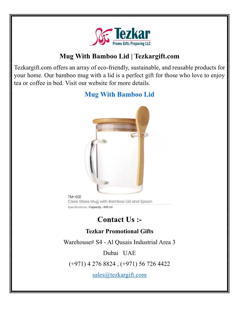 Mug With Bamboo Lid | Tezkar...