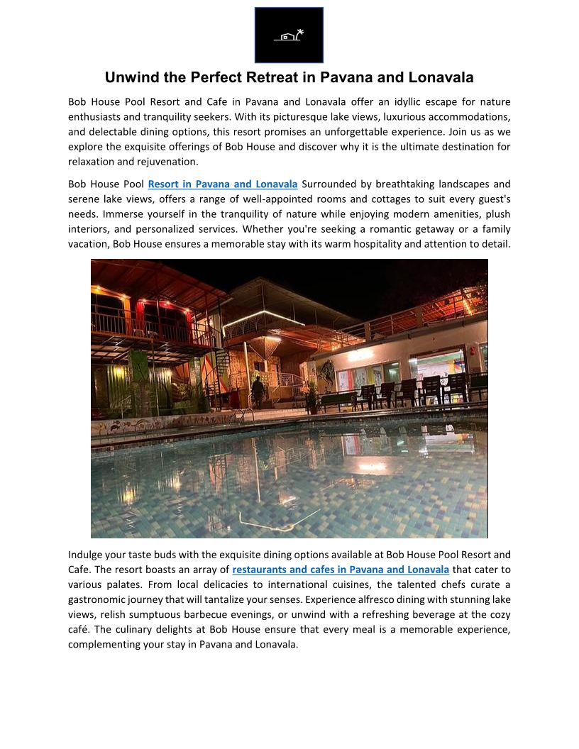 Explore the beauty of nature at our lake-view hotel and resorts in Pavana and Lonavala. Enjoy fine dining at our top restaurants and cafe. Book your stay now.