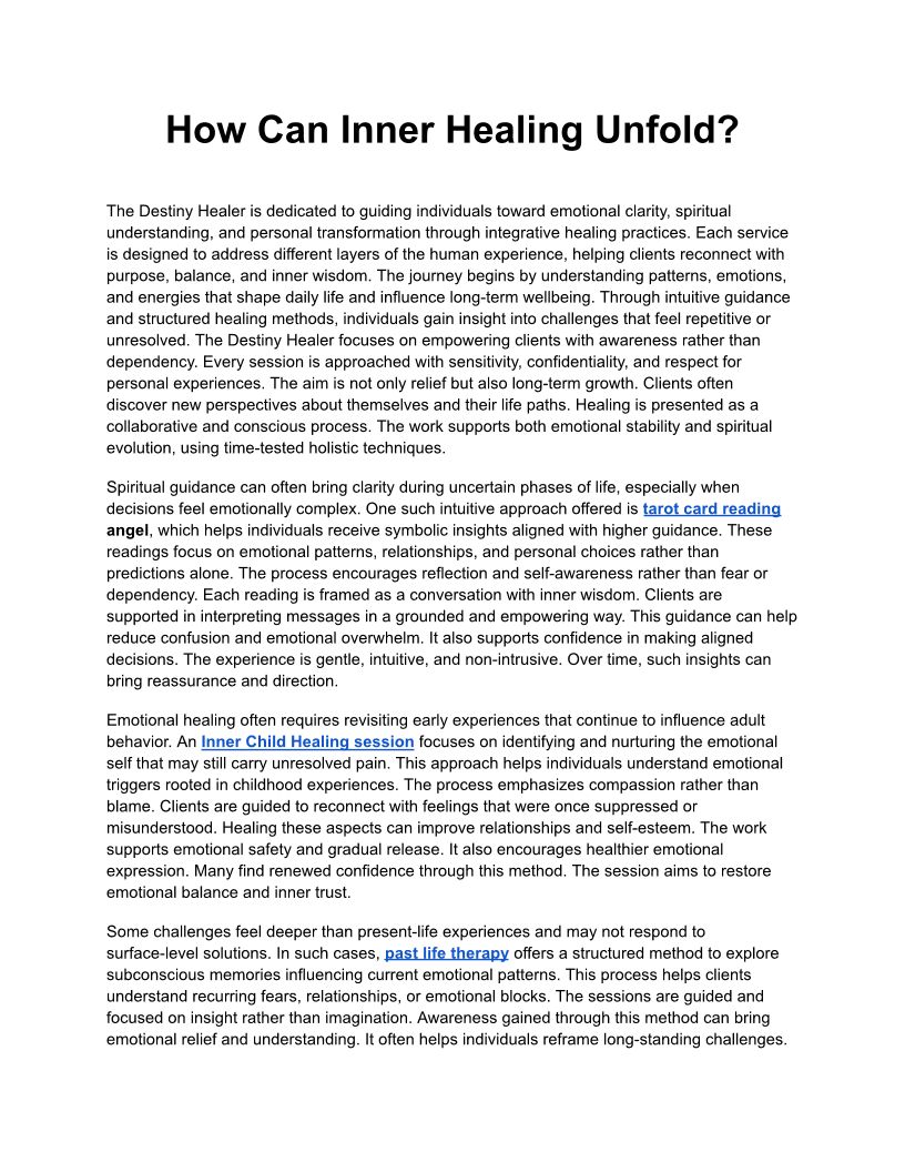 How Can Inner Healing Unfold...