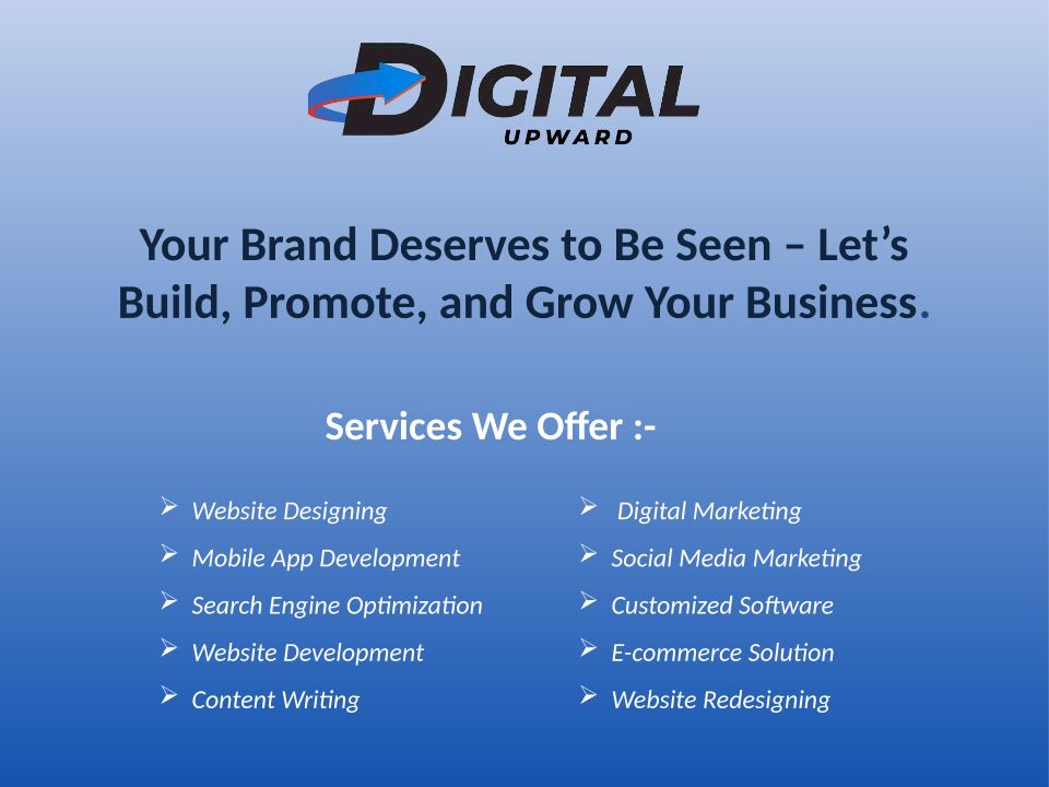 Digital Upward is a multi-tasking and multi-service company having both experience and expertise in the world of digitization. We at Digital Upward cater to our