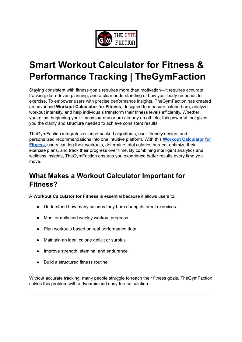 Smart Workout Calculator for...