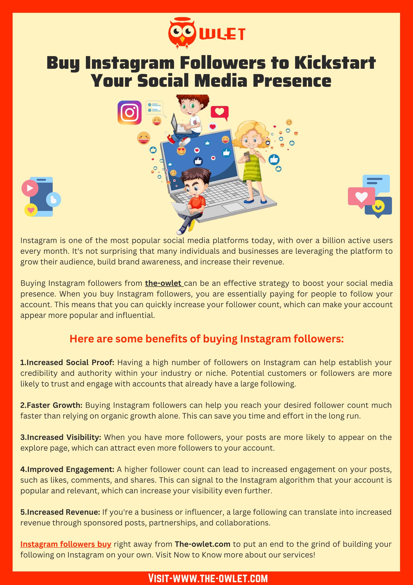 You Can buy SMM Services from The-owlet to get more exposure on Instagram. Instant delivery and helpful customer service available around-the-clock. Visit us!